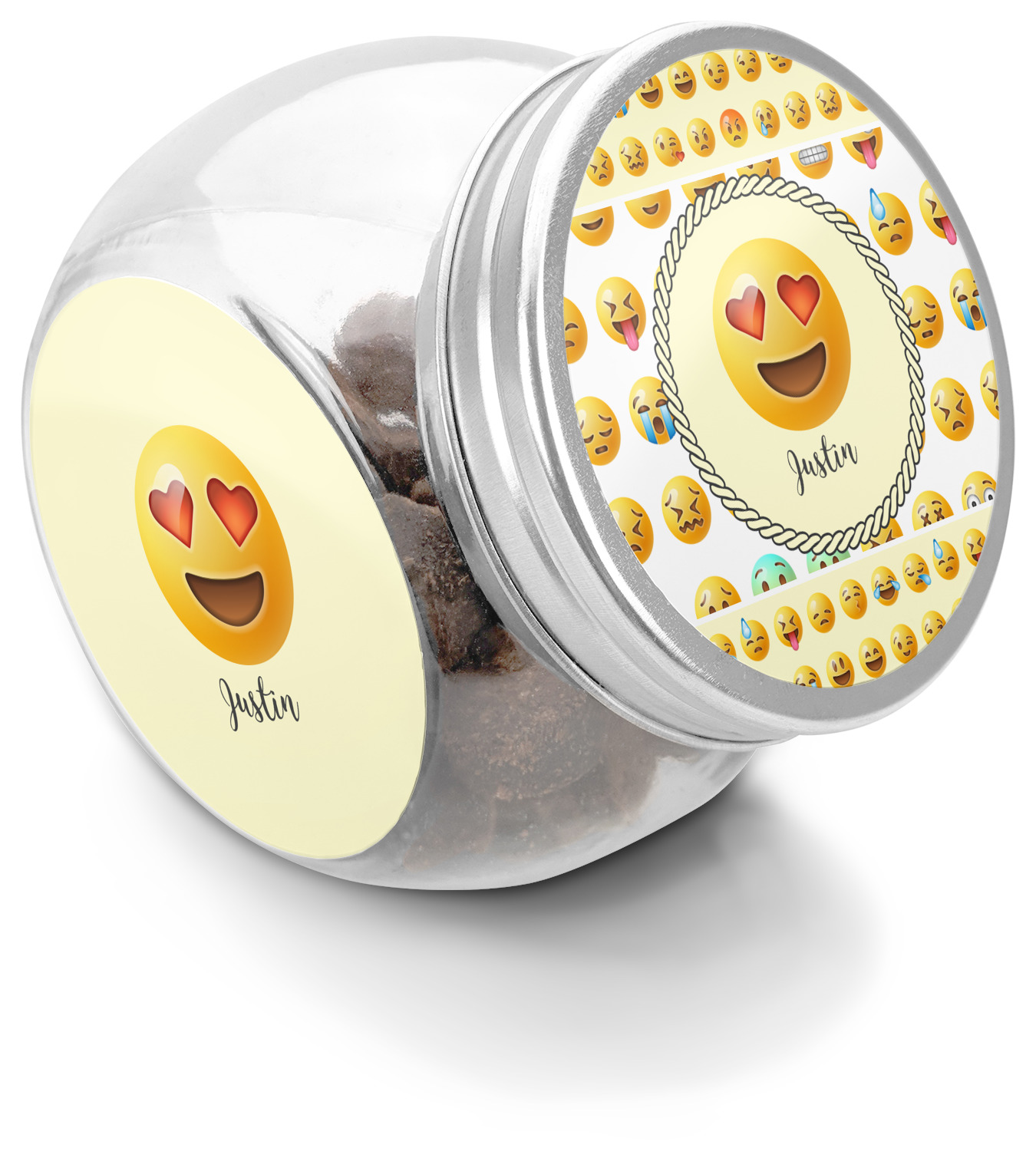 This treat jar is an excellent way to store treats for your favorite canine or feline. Moreover, their delicate, classy appearance makes them a tasteful addition to your countertop's décor. Crafted from clear glass, its unique construction and silver metal, screw-on lid allows for quick and easy access. Three, permanent, vinyl stickers are applied to both sides of the jar and lid, presenting your personalized design. The base of this glass, dog treat jar is 3.4" x 4.75", and the jar stands at 5" tall. Though on the smaller side, this jar is best suited for smaller treats or training treats.