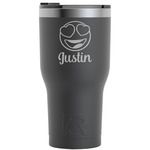 Who does not LOVE emojis? This design uses two different densities of our 3D Emoji background. We used the denser pattern on the top and bottom AND we used a light yellow for our background color. In the middle, we changed the density and made the background color white. We then chose a simple round label and a graphic & text personalization style. We chose on of the emoji's for our graphic and a name for our text.