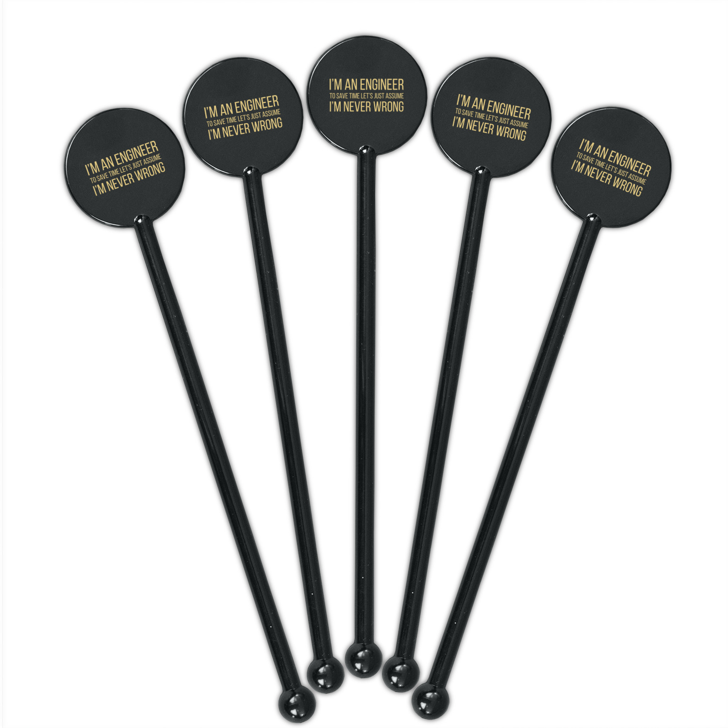 Quote + Saying Designs for 5.5" Round Plastic Stir Sticks - Black - Single-Sided