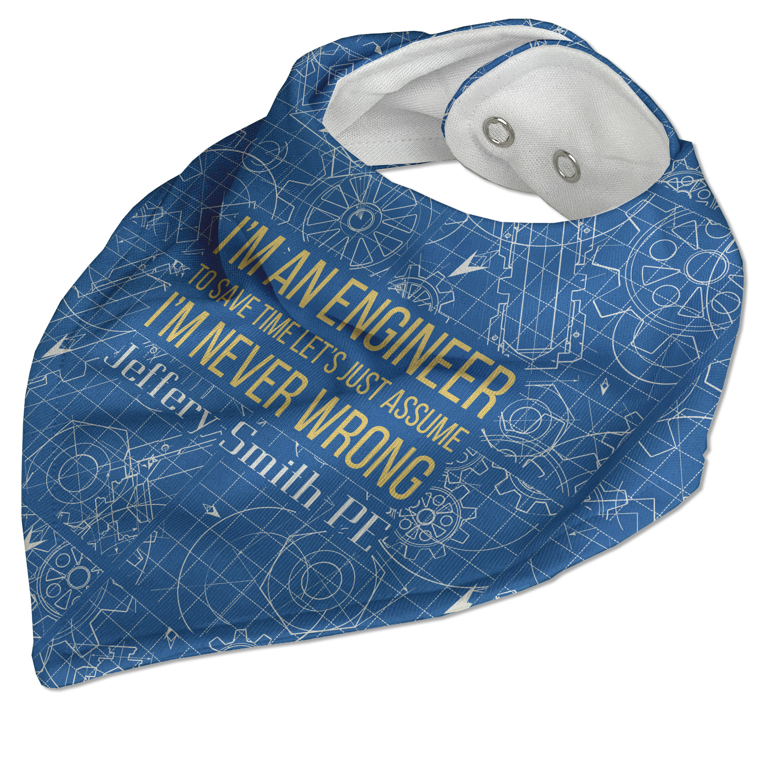 The main focus of this design is a funny quote that says "I'm an engineer, to save time let's just assume I'm never wrong." This will be sure to get anyone to crack a smile. The background is a blueprint pattern with gears and other shapes. The main colors are blue and light yellow. Your personalization goes directly under the quote.