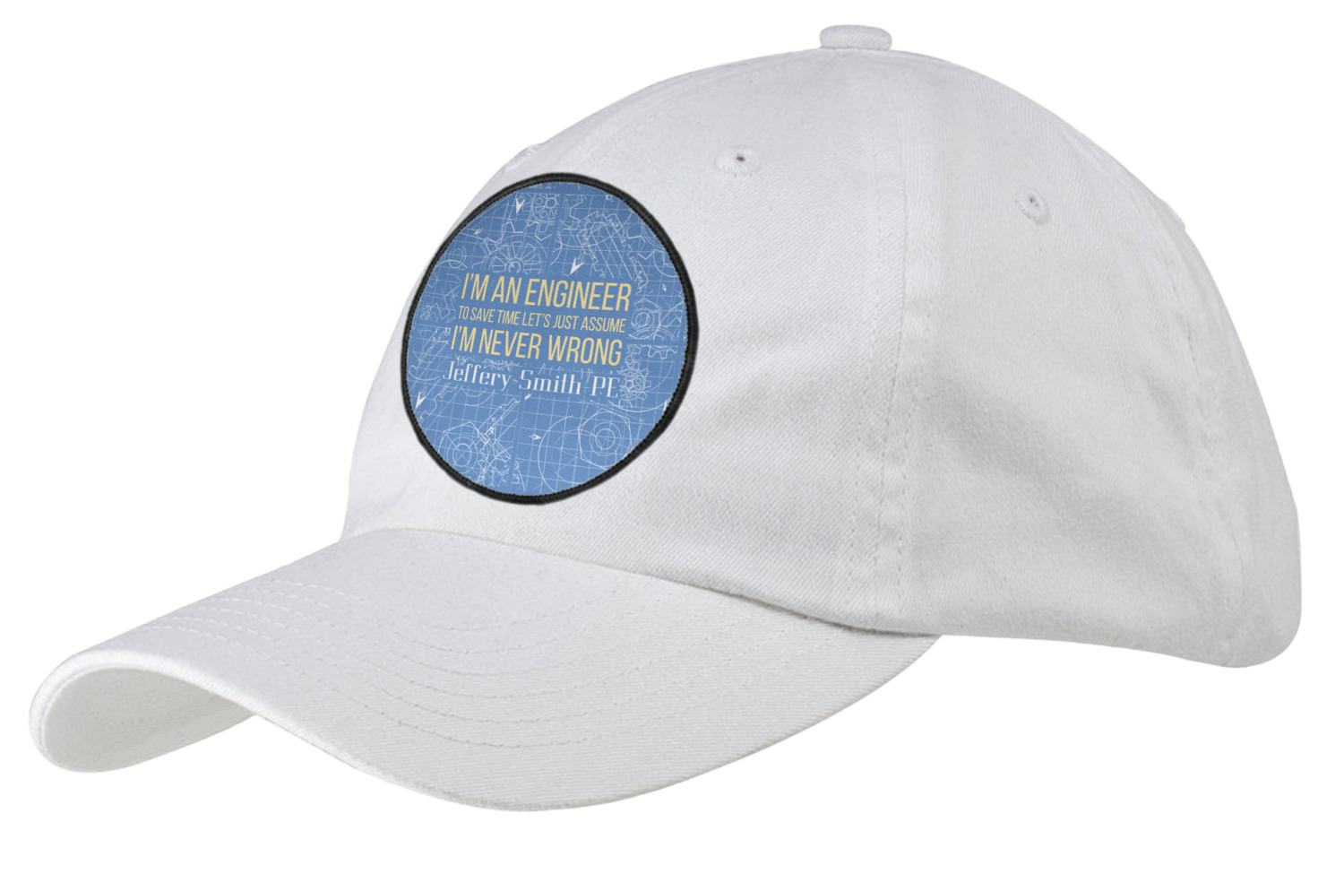 The main focus of this design is a funny quote that says "I'm an engineer, to save time let's just assume I'm never wrong." This will be sure to get anyone to crack a smile. The background is a blueprint pattern with gears and other shapes. The main colors are blue and light yellow. Your personalization goes directly under the quote.