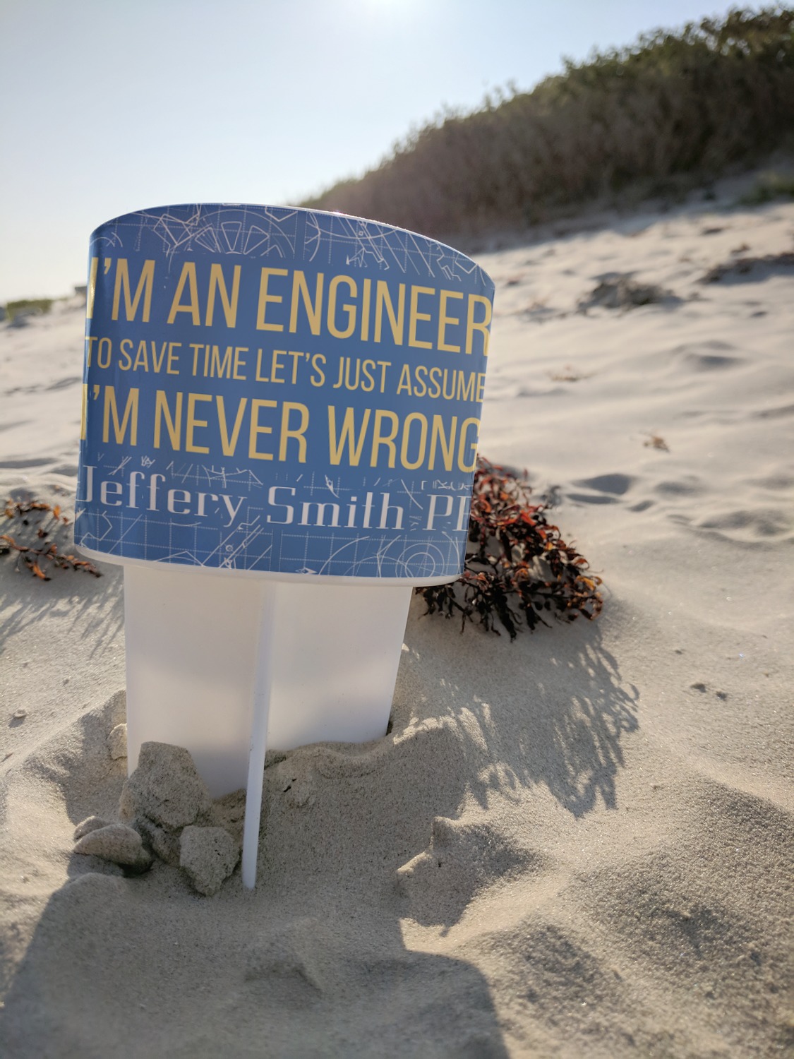 Have fun tweaking this design to be exactly what you want. Change the colors, pattern, quote, font, and more! There are even a few different engineering quotes to choose from! Have fun designing and let us know if you need any help.