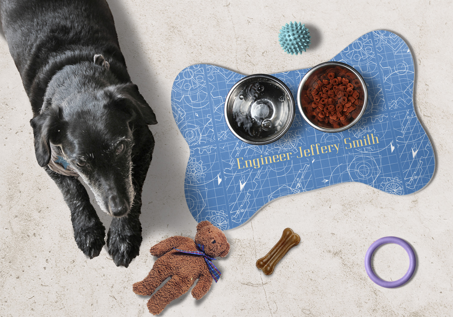 If you are purchasing a pet food mat, consider a customized dog bowl, dog collar, a bone-shaped dog tag, or any other pet supplies to match! Check out our Pet Accessories category for even more options! Craft a design that you want to extend to your eating area? Try our Home and Garden category for kitchen decor options!