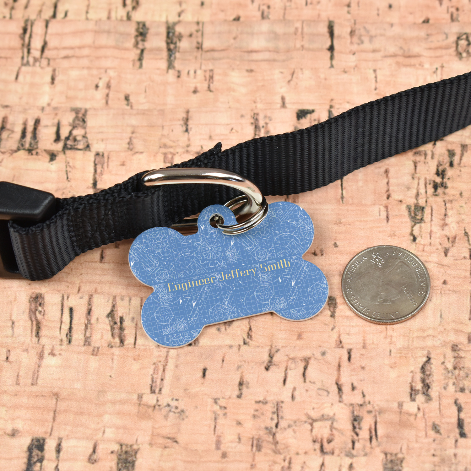 Shaped like a bone and made from aluminum, these tags are available in 2 different sizes.