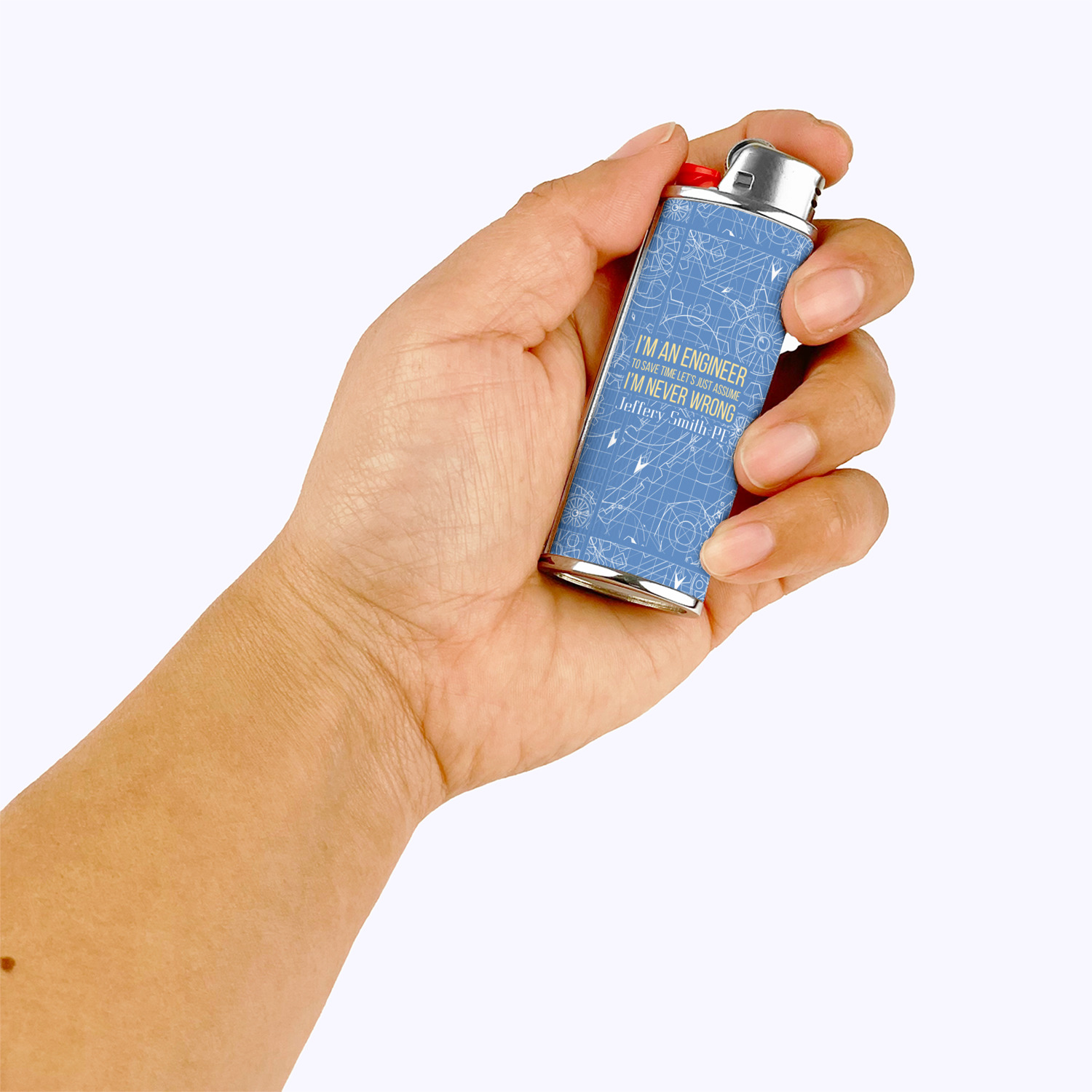 Use our design studio to design your own lighter case or design your own with your own artwork. Then we will print the design on a high quality canvas textured material and apply it to your case. By using the canvas textured material we help improve your grip to make for easy lighting. Lighter not included.