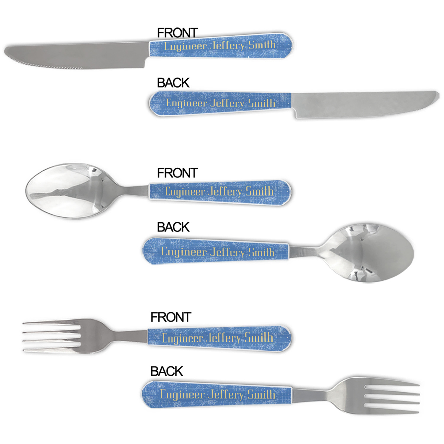 We print your customization on the handles, making these cutlery sets unique to you.