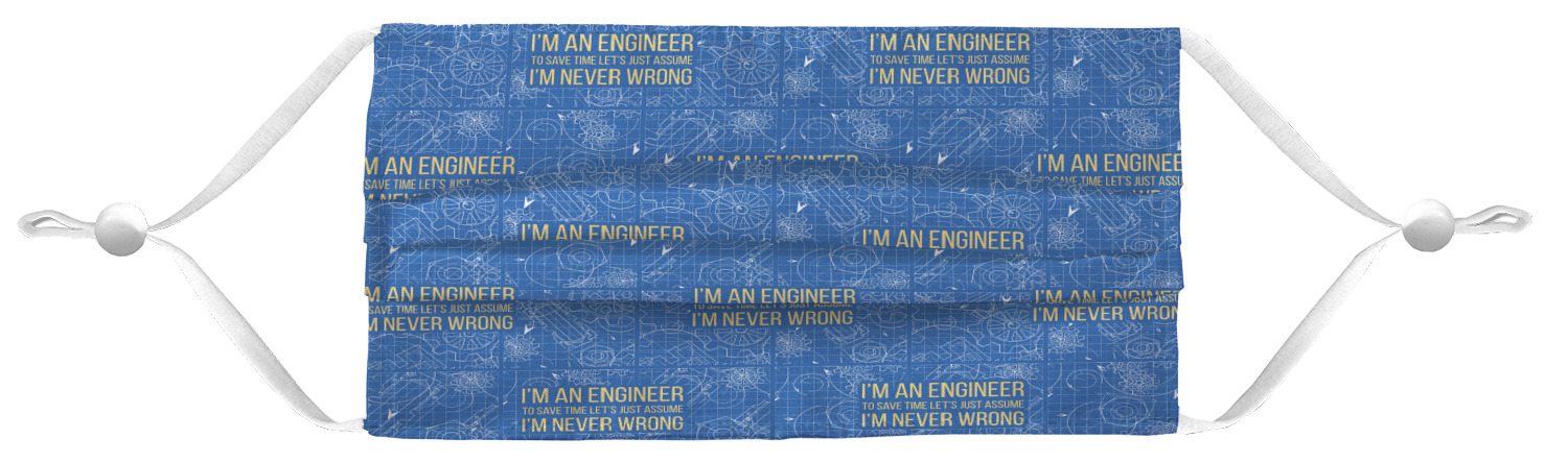 The main focus of this design is a funny quote that says "I'm an engineer, to save time let's just assume I'm never wrong." This will be sure to get anyone to crack a smile. The background is a blueprint pattern with gears and other shapes. The main colors are blue and light yellow. Your personalization goes directly under the quote.