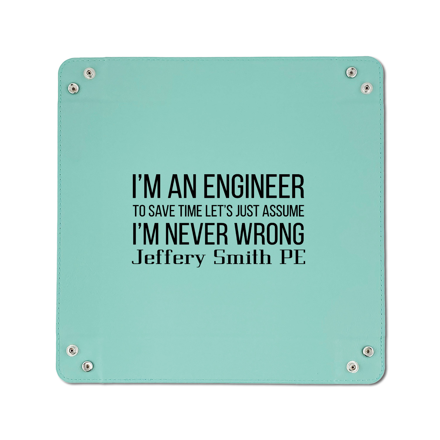 Quote + Saying Designs for Faux Leather Dice Trays - 6" x 6" - Teal