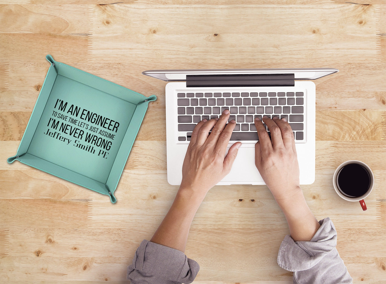 Quote + Saying Designs for Faux Leather Dice Trays - 9" x 9" - Teal