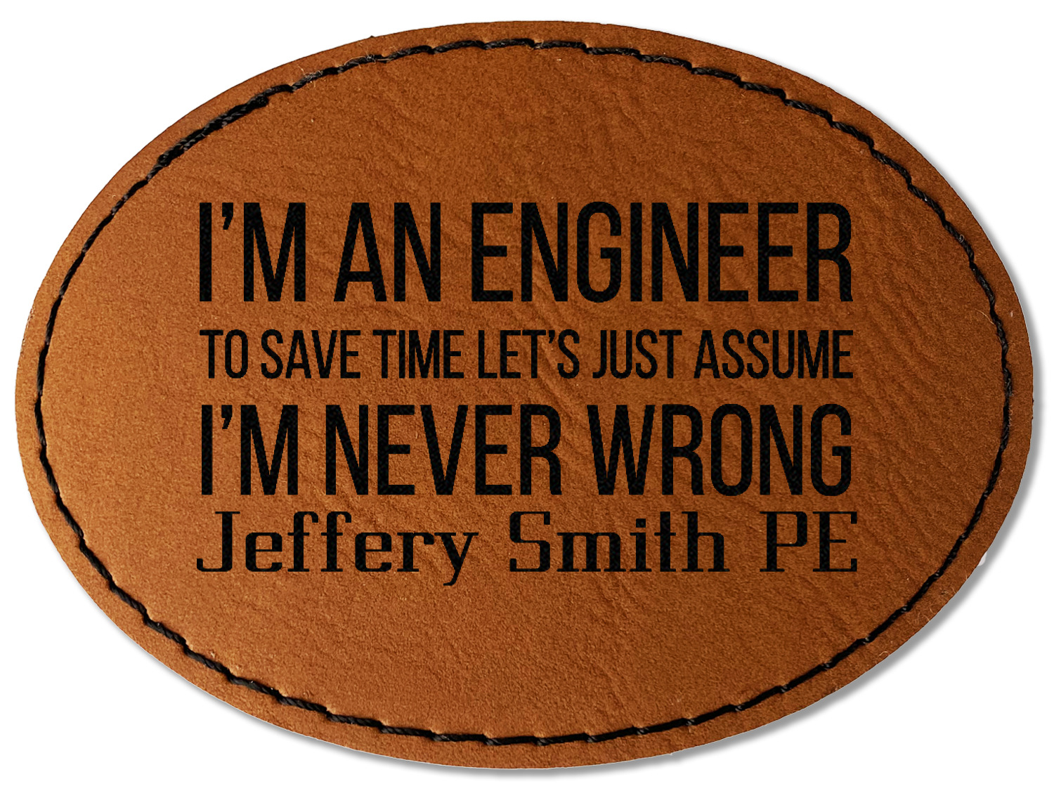 Our leather patches come in 4 different shapes - Square (3" x 3"), Round (3" x 3"), Oval (3.5" x 2.5"), Rectangle (3.5" x 2.5") and a beautiful rich brown rawhide or cognac color.