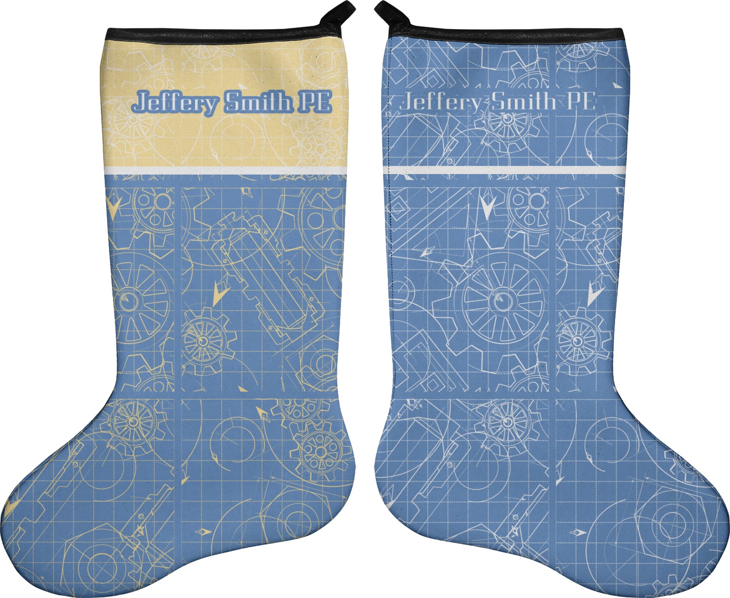 These 17" x 11" stockings are made of neoprene and have a black trim to give them a fantastic finished look. Your very own design is printed right onto the stocking, either single sided with white on the back or double sided where can use the same or different designs / patterns on the front and the back - the choice is yours. At the top of the stocking is a 2" loop for hanging.