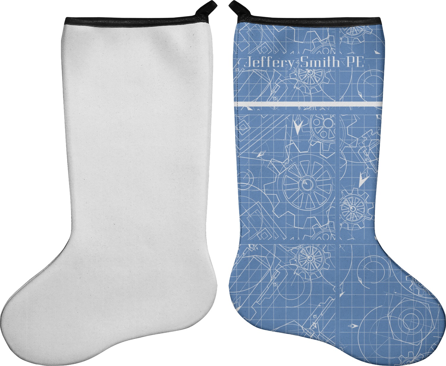 These 17" x 11" stockings are made of neoprene and have a black trim to give them a fantastic finished look. Your very own design is printed right onto the stocking, either single sided with white on the back or double sided where can use the same or different designs / patterns on the front and the back - the choice is yours. At the top of the stocking is a 2" loop for hanging.