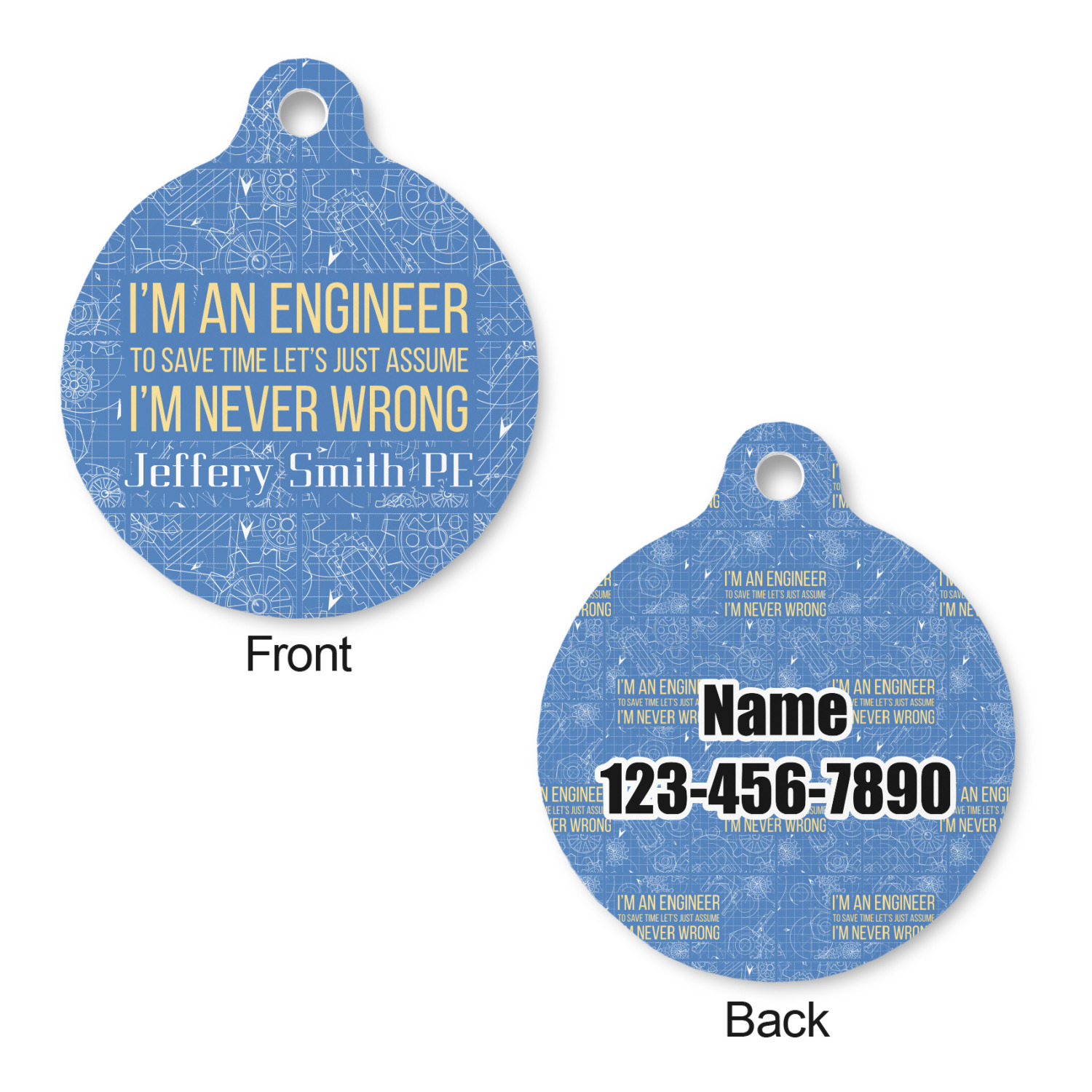 Go ahead; skip the monotony of plain pet ID tags with your very own, customized & personalized, round pet tag! This pet ID tag, fitting for both cats and dogs, will catch the eye of any onlooker (humans, canines, and felines, alike!) and accentuate your pet's individual personality.