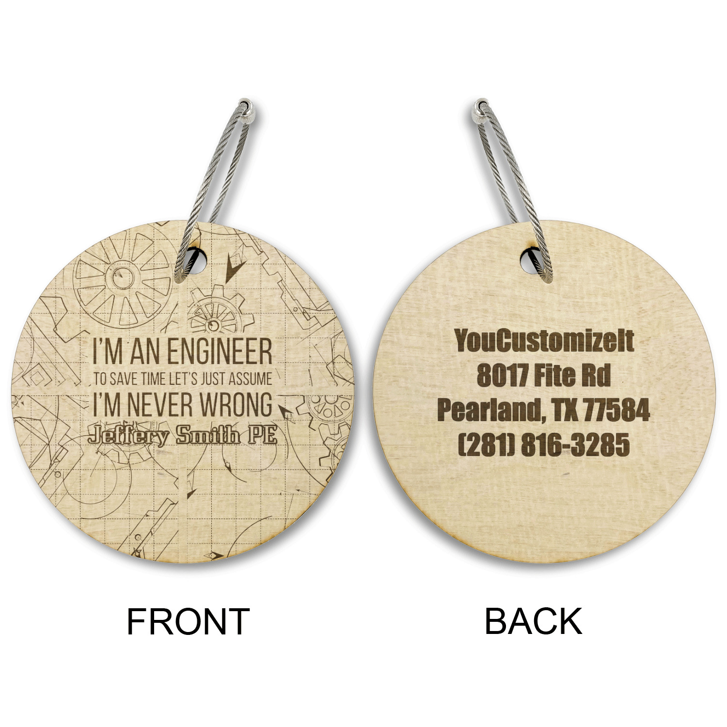 Made from a premium hardwood, these luggage tags are laser engraved and cut just for you. The front contains your design of choice and the back has your contact information to ensure your luggage gets back to you if ever lost.