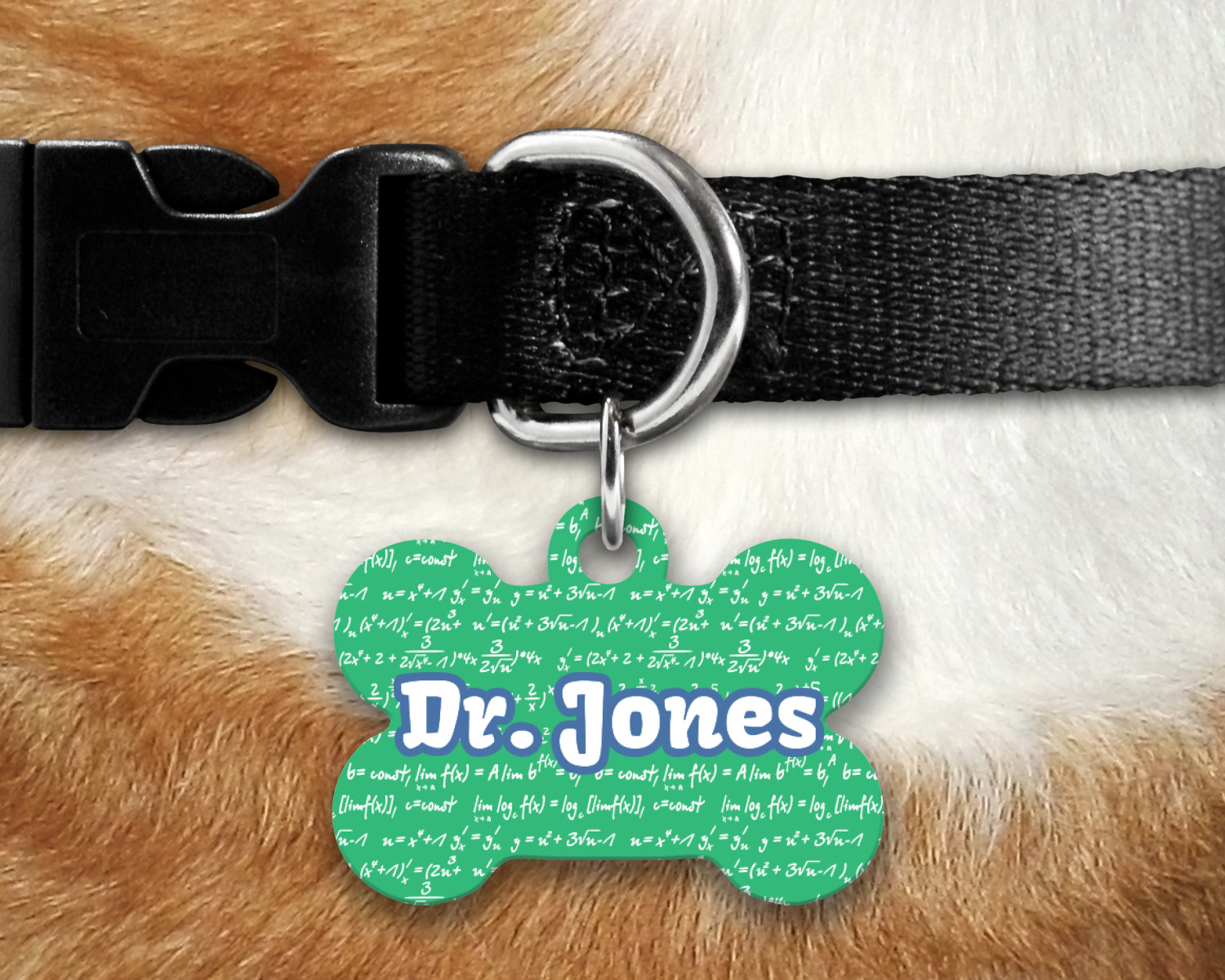Our default design templates print your dog's personalization on the front and your contact information on the back; however everything is customizable, so you customize the patterns, the colors, the personalization, the contact information etc.