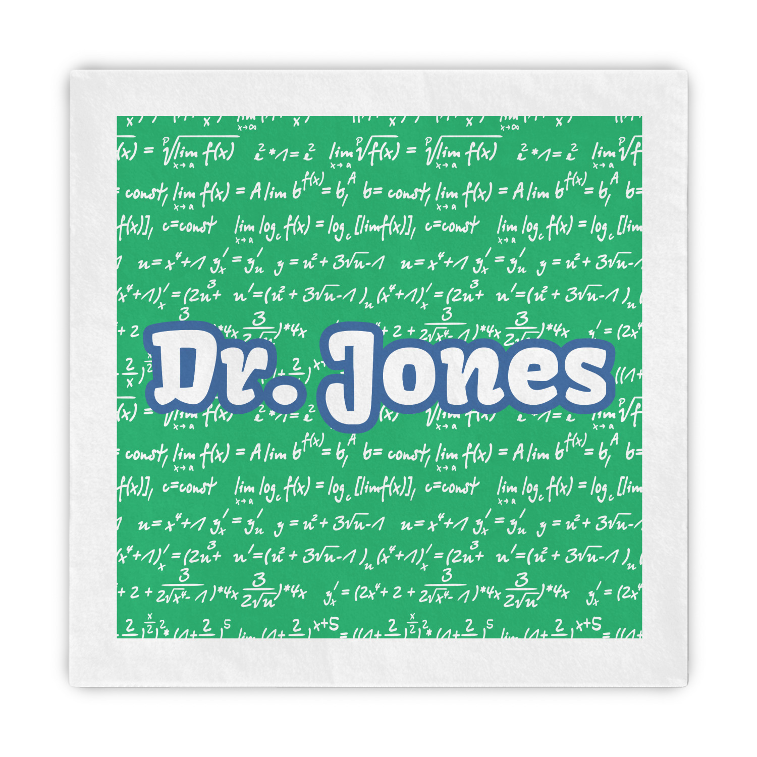 Embrace your inner nerd (or make someone else embrace theirs) with this Equations design. The design is composed of a background color, math equations, and a name through the center. The background color is shown in green, but be customized to any of our numerous colors. The equations are in white chalk-like front and cannot be modified.