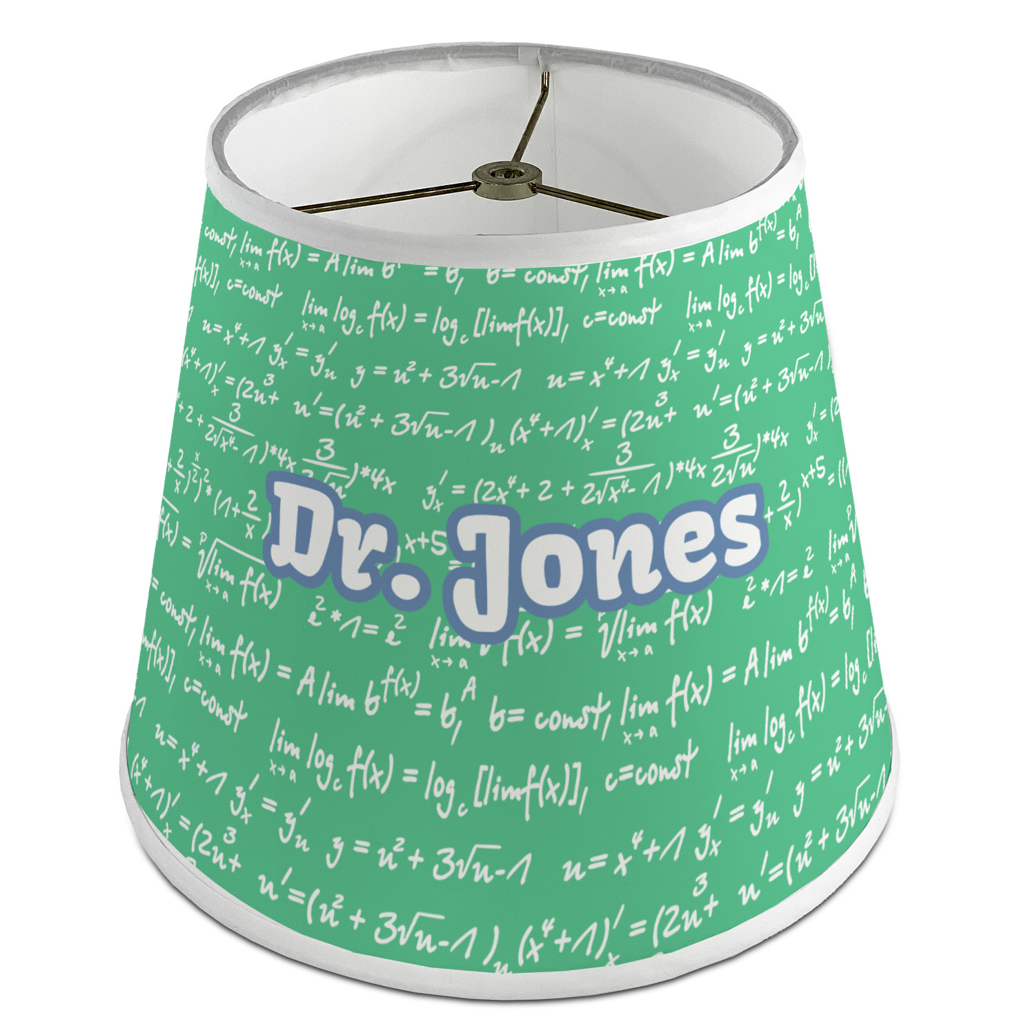 The base of this lampshade is 12 inches in diameter, and the top spans 8 inches in diameter. The total height of the lampshade is 10 inches. The angled nature of this custom lampshade concentrates the light, making it ideal for smaller spaces. This lampshade is made of matte, polyfilm, and displays your customization in its middle. The top and bottom of this colorful lamp shade are lined with a white fabric ribbon (which can be replaced with black inside the design studio) which frames your design and creates a sophisticated finish. As an UNO fitter lampshade, this unique lamp shade will fit a variety of bases.