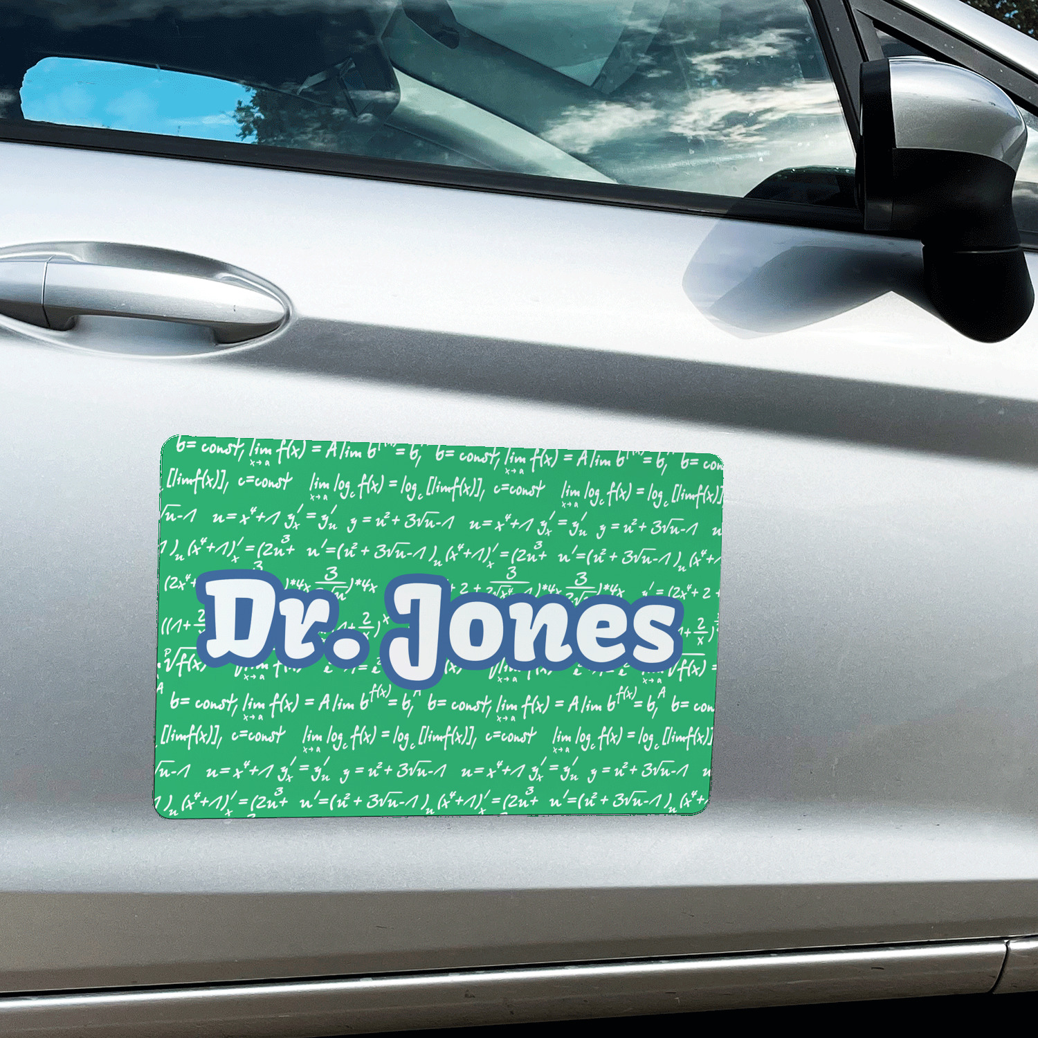 Your personalized large car magnet measures at 18 inches wide by 12 inches tall. They are 1 millimeter thick, which is considered, within the industry, as the ideal thickness for automobile magnets. The magnetic car decals will adhere to any smooth, ferrous metal surface of your cars body, such as the trunk door or a side panel.