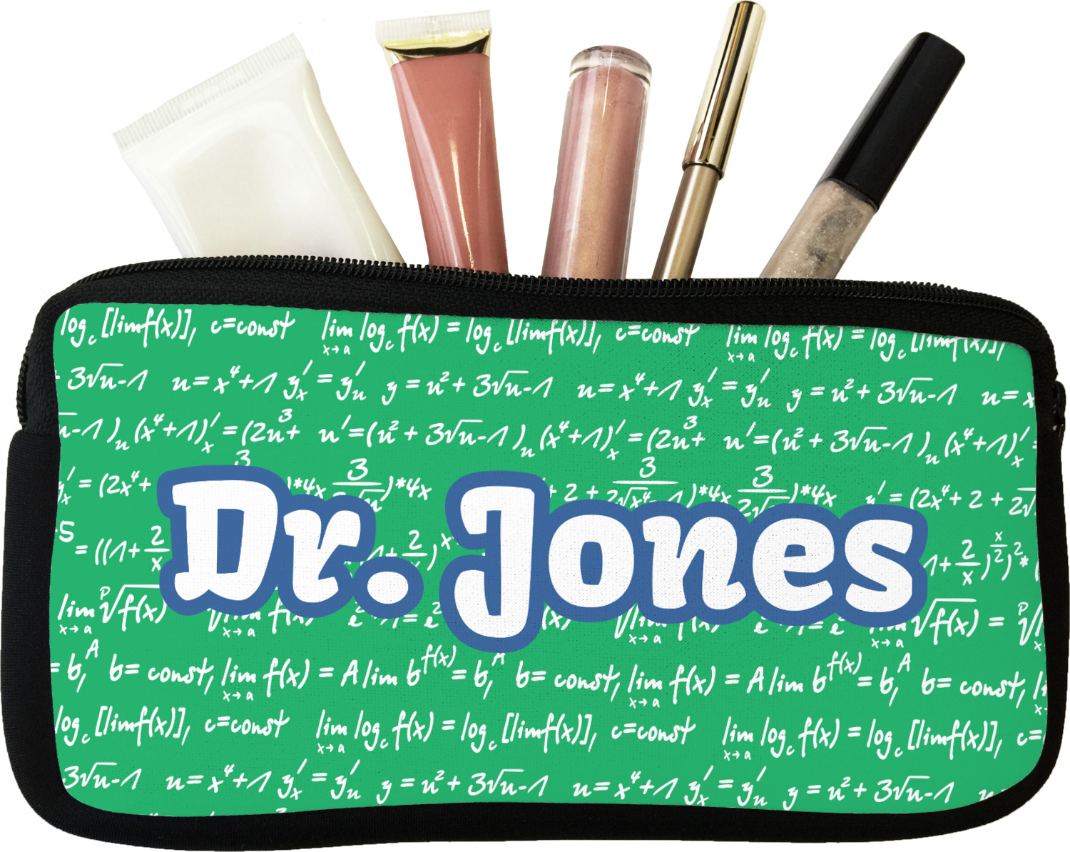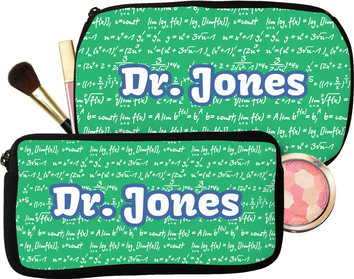 Our personalized makeup bags are available in many different designs, patterns and colors - so you are sure to find one that will love. They are made of neoprene (same material as wet-suits) and thus are water resistant, so spillages in your makeup bag will not end up all over you purse. They are customized on one side and are black on the other side and the zipper is black as well.