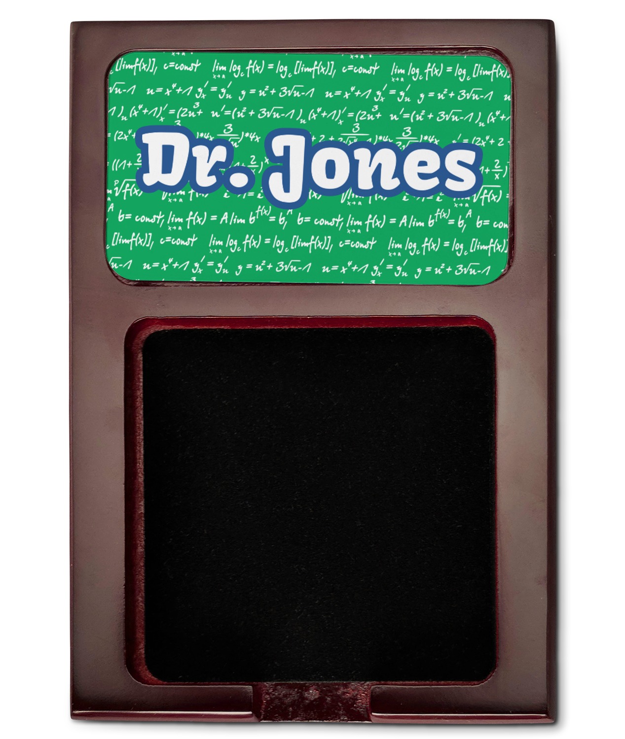 Crafted from a fine mahogany, this post it note holder is in the shade of a dark, cherry color. The dispenser itself is about 4.25 by 6.25 by 0.75 inches. You can place your 3 by 3 inch sticky notes in the indentation below the nameplate. We print your customization onto the nameplate that rests above the velvety indentation.