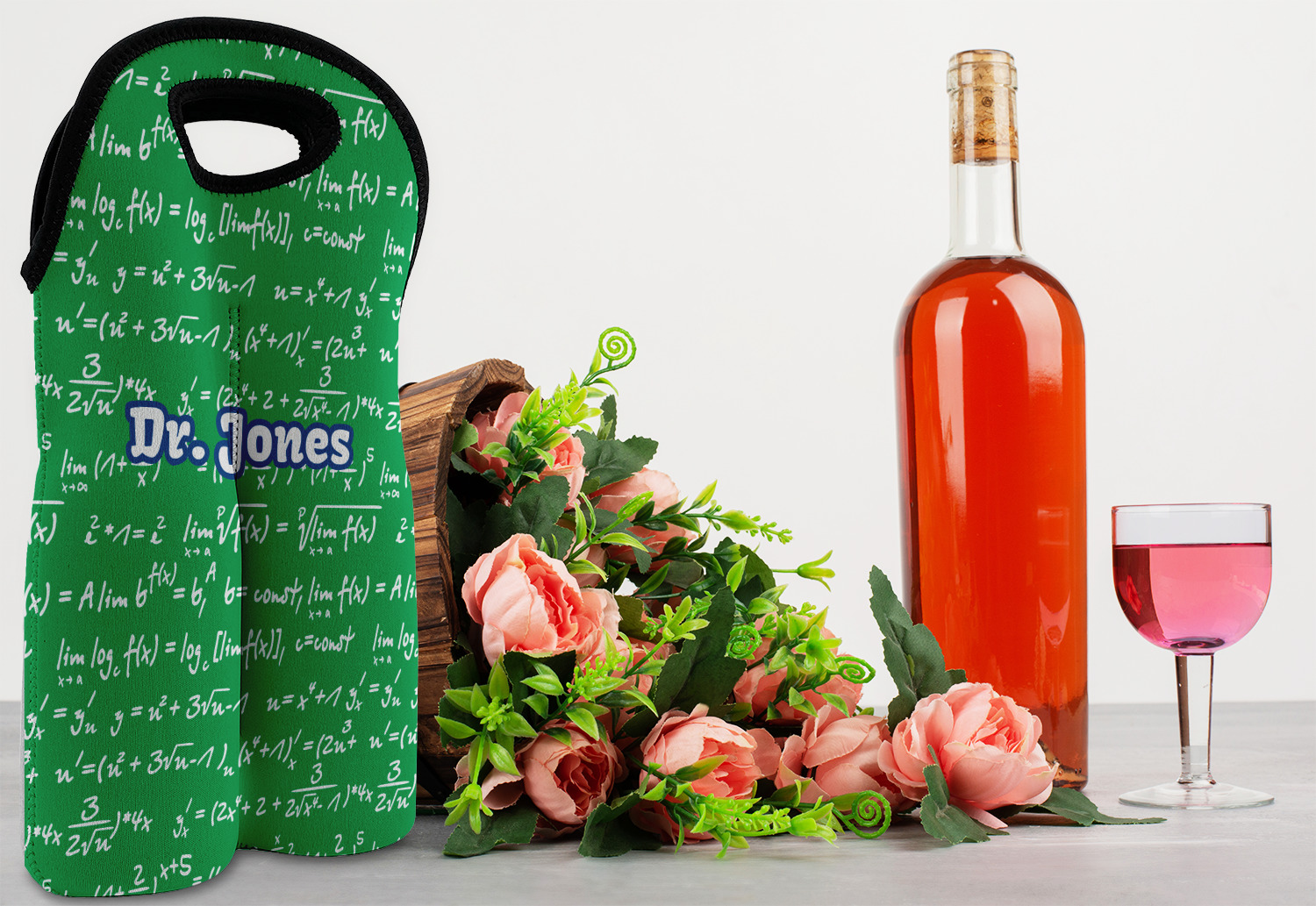 Be the hero of the party when you walk in with not one, but two bottles of spirits in our personalized wine/liquor bottle tote bags. Party guests just might be as excited about the outside of the tote as they are for what's inside!!