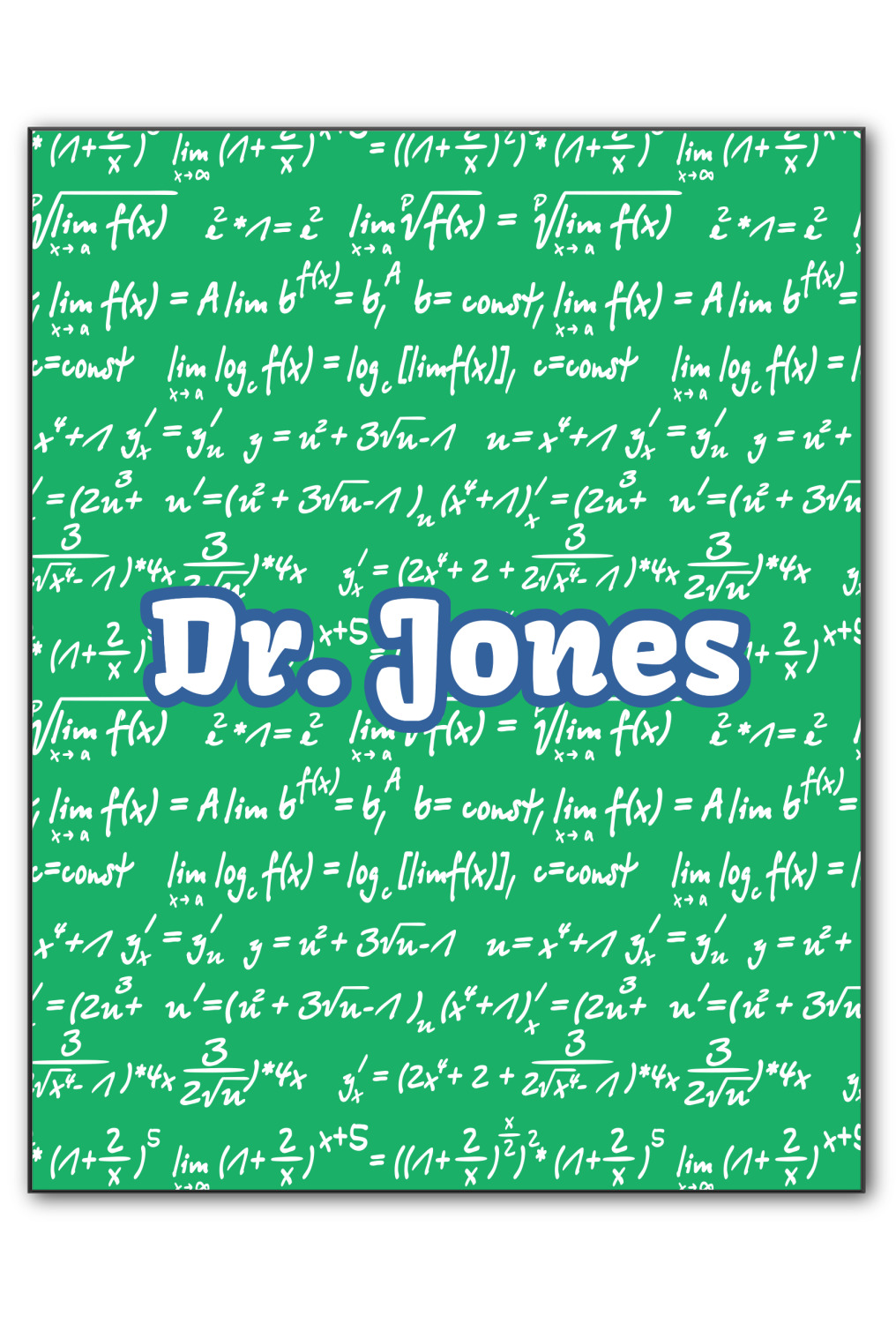 Embrace your inner nerd (or make someone else embrace theirs) with this Equations design. The design is composed of a background color, math equations, and a name through the center. The background color is shown in green, but be customized to any of our numerous colors. The equations are in white chalk-like front and cannot be modified.