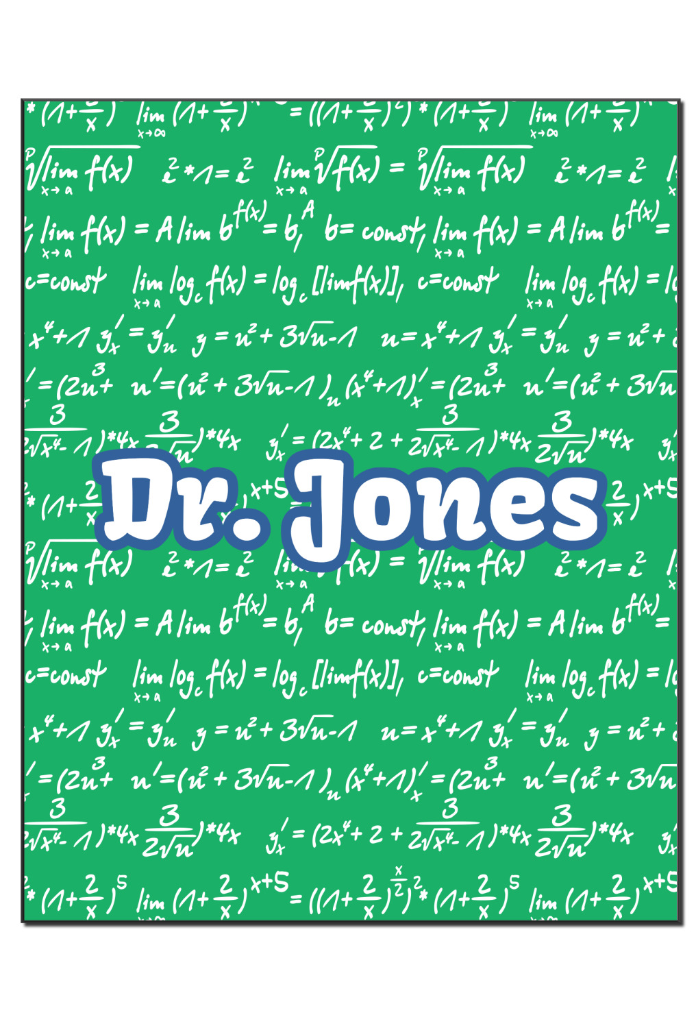 Embrace your inner nerd (or make someone else embrace theirs) with this Equations design. The design is composed of a background color, math equations, and a name through the center. The background color is shown in green, but be customized to any of our numerous colors. The equations are in white chalk-like front and cannot be modified.