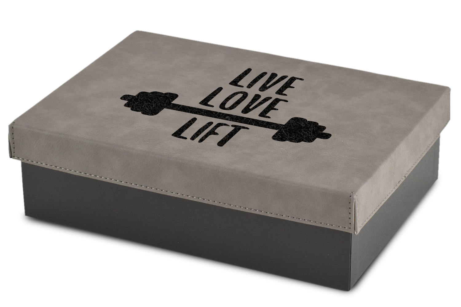 These gift boxes are available in 3 different sizes to accommodate various sized gifts. Available in gray as a neutral color for any occasion as well as to showcase your design boldly. Engraved with a laser this high quality paper board and faux leather gift box is unique and makes any gift stand out.