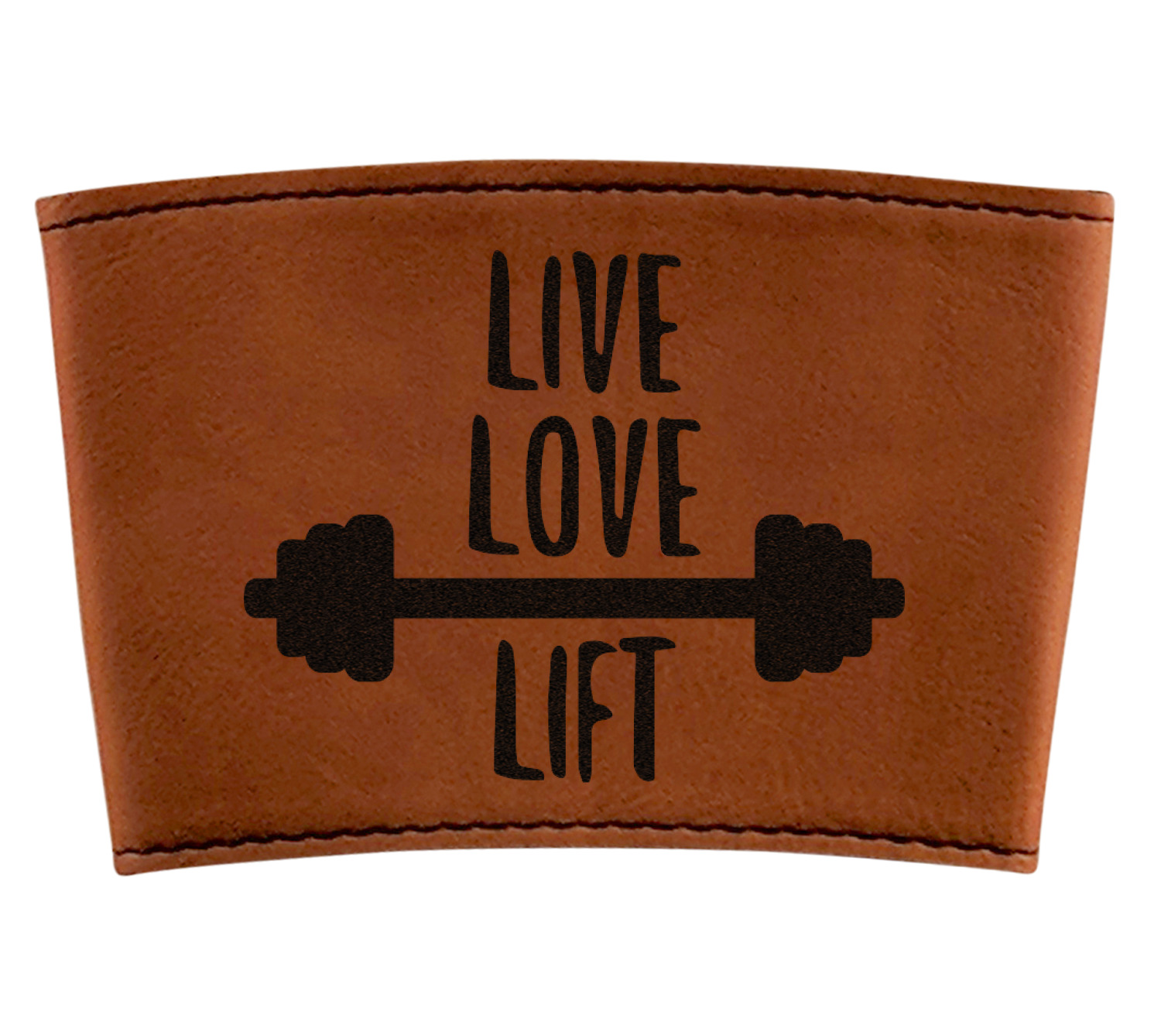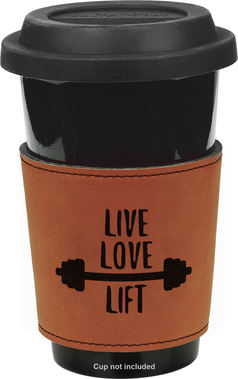 This cup sleeve is made from a suave, cognac-brown leatherette and finished with an intricate, black stitch. The interior of this can sleeve is fabricated from a thin foam material to help insulate your mug's contents. The sleeve is specifically made to suit tapered glasses or mugs, so the top's diameter is 3.5 inches, while the bottom's diameter is 2.75 inches. Your customized design will be laser engraved into the leatherette, leaving behind crisp, black imprint. With these products, we provide you with the option of engraving the front and back, or the front only.