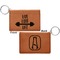 These ID wallet keychains features three pockets on the inside to accommodate your ID and your most frequently used cards. Another pocket occupies the front of the wallet's exterior, and can hold some cash or another card. The wallet is accompanied by a thick metal ring for easy attachment to a belt clip or purse. Each card holder keychain measures at 4.25 by 3 inches and is a beautiful, cognac, medium-brown shade. The personalized monogram, font, or graphic of your choosing is laser engraved into the surface of the wallet, creating a black imprint. We sell these ID wallets in two models: single sided and double sided engraving.