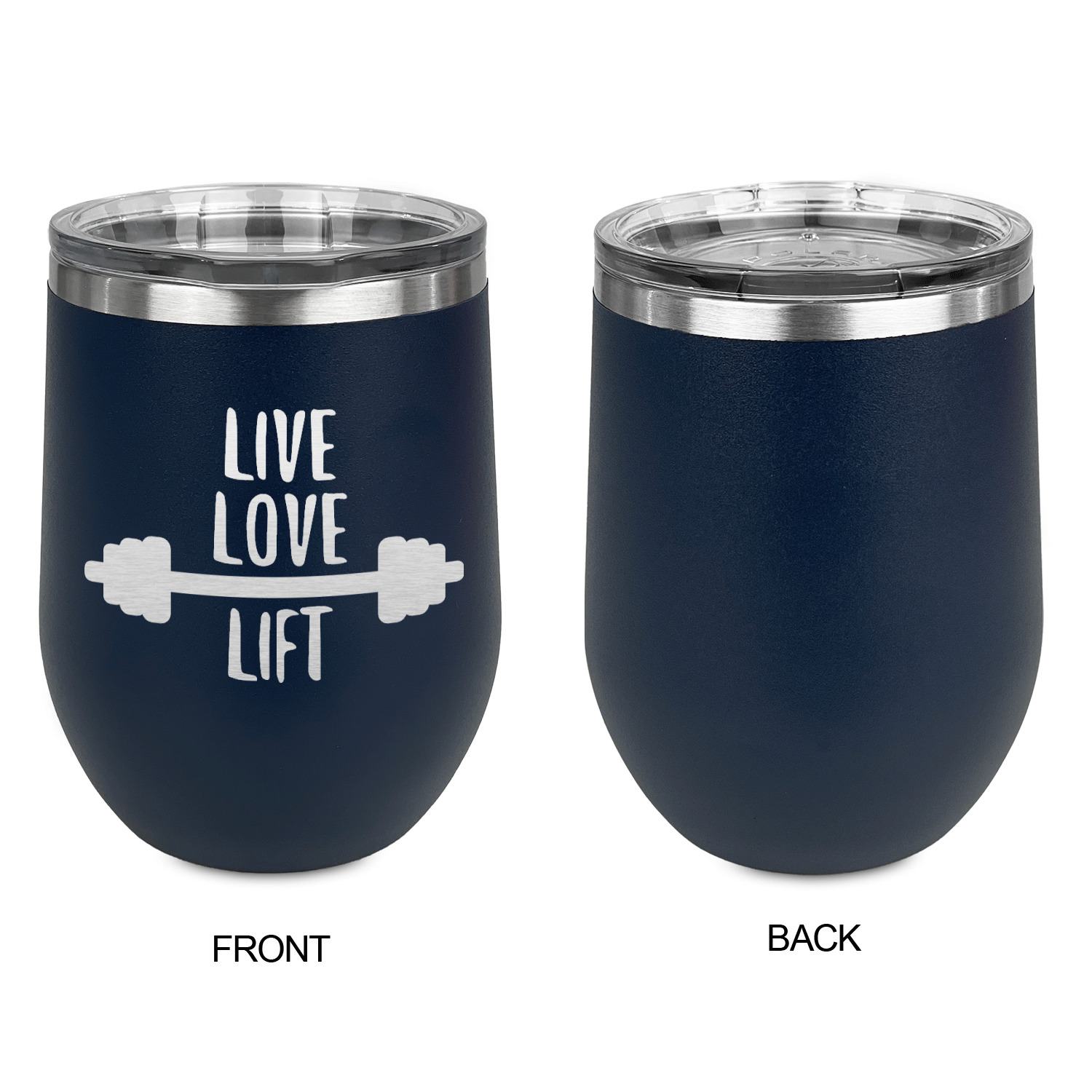 Design your wine tumbler with a cool graphic or quote. Even put your initials or monogram! These cups are laser engraved, which looks extra sharp on the metal tumbler.