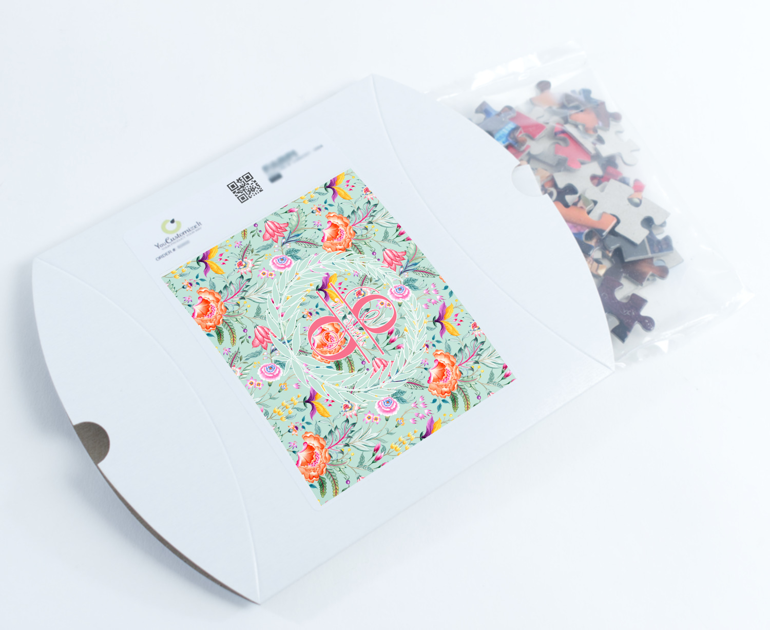 You can also upload your logo or art that you or your kids drew. To create more challenging jigsaw puzzles, you can create a pattern from with your logo or artwork. You can also add other elements such as text or personalization.