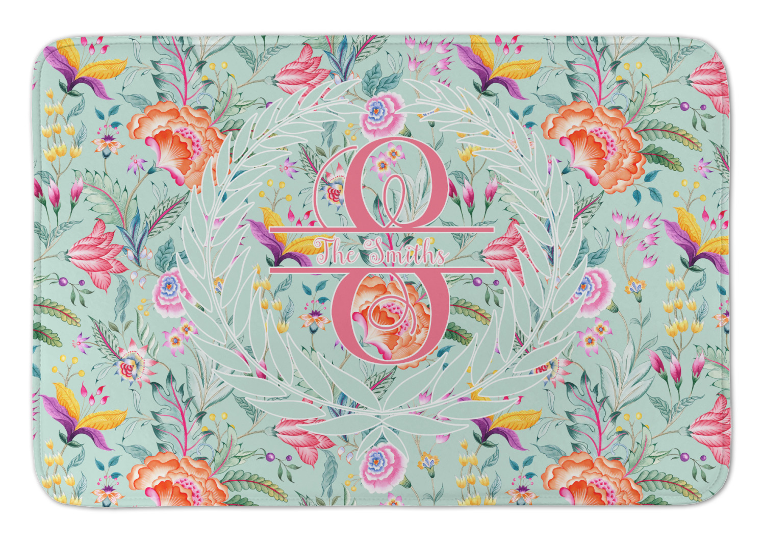 It features beautiful flowers and has a recolor-able background. We chose a light teal blue background to create a really soft & pretty design. We have featured a name & initial personalization in a leaf frame for the main design template.