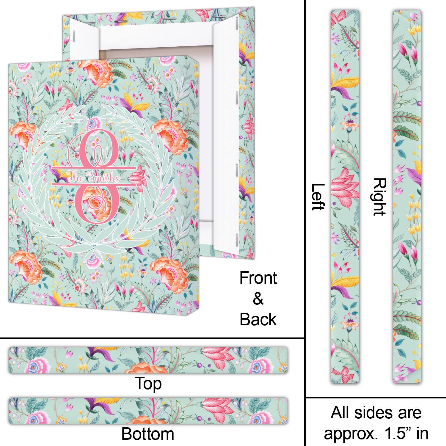 It features beautiful flowers and has a recolor-able background. We chose a light teal blue background to create a really soft & pretty design. We have featured a name & initial personalization in a leaf frame for the main design template.