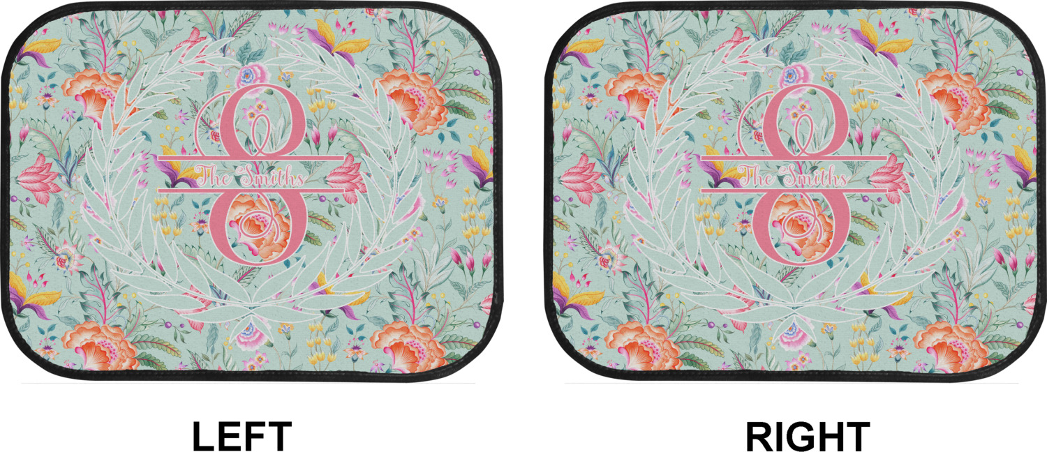 We craft our auto floor mats mats from polyester, apply a black finish to the edges, and lined at the bottom to prevent slippage. These mats protect your floors from grass, mud, and any accidental spills. We display your personalized design on the front face of each mat. The sizes of these car floor liners are standardized to provide a versatile fit for all vehicles. The front rows car mats measure at 17 by 26.5 inches, while the back rows measure at 17 by 13 inches. We sell three packages of car floor mats. You can purchase a pair of front row car mats, a pair of back row car mats, or a set of front row and back row car mats. To make an informed purchase, we recommend measuring the surface area of your car floors.