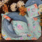 It features beautiful flowers and has a recolor-able background. We chose a light teal blue background to create a really soft & pretty design. We have featured a name & initial personalization in a leaf frame for the main design template.