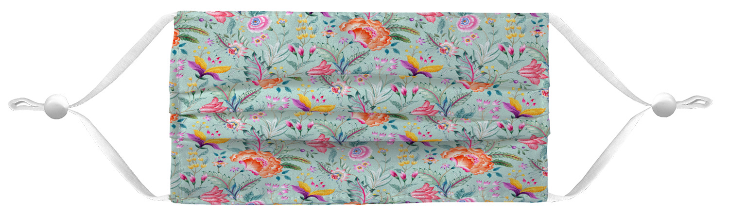 These fun face masks are 7" wide and 3.5" high. They feature pleats, adjustable ear loops, and are made with two layers of fabric. The top layer where your design is printed is a breathable polyester sheeting, while the inside layer is a soft microfiber polyester