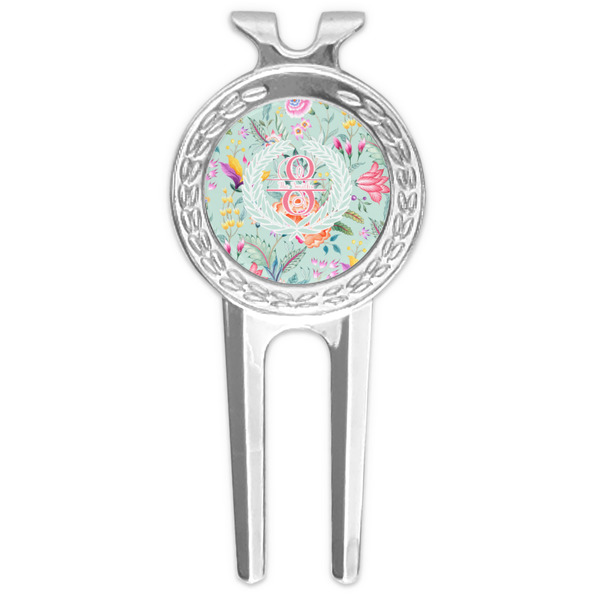It features beautiful flowers and has a recolor-able background. We chose a light teal blue background to create a really soft & pretty design. We have featured a name & initial personalization in a leaf frame for the main design template.