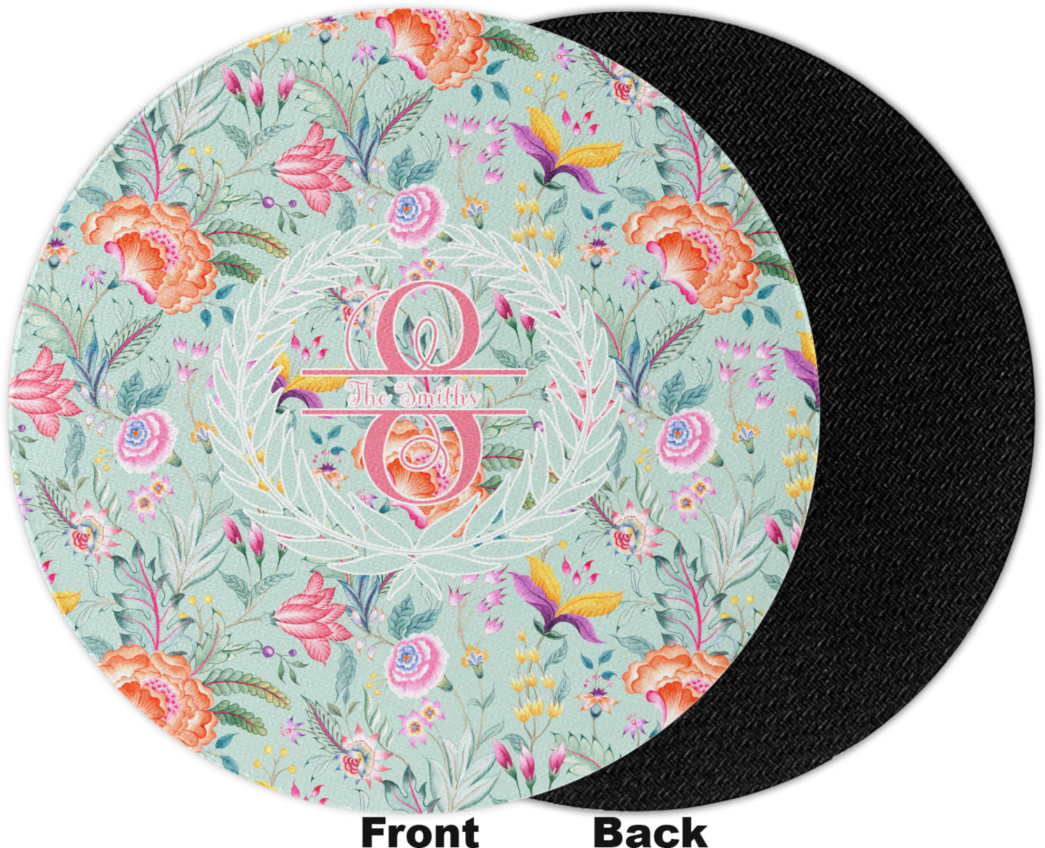 It features beautiful flowers and has a recolor-able background. We chose a light teal blue background to create a really soft & pretty design. We have featured a name & initial personalization in a leaf frame for the main design template.