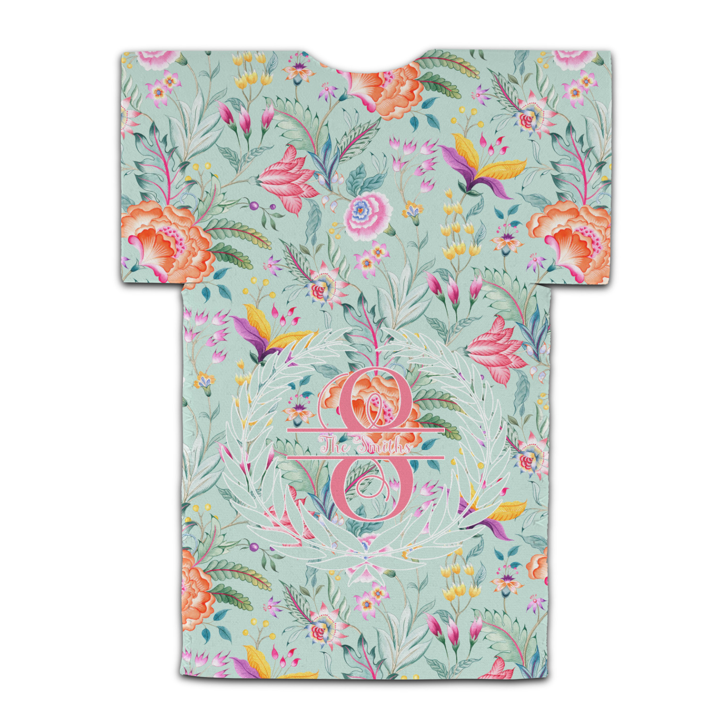 It features beautiful flowers and has a recolor-able background. We chose a light teal blue background to create a really soft & pretty design. We have featured a name & initial personalization in a leaf frame for the main design template.