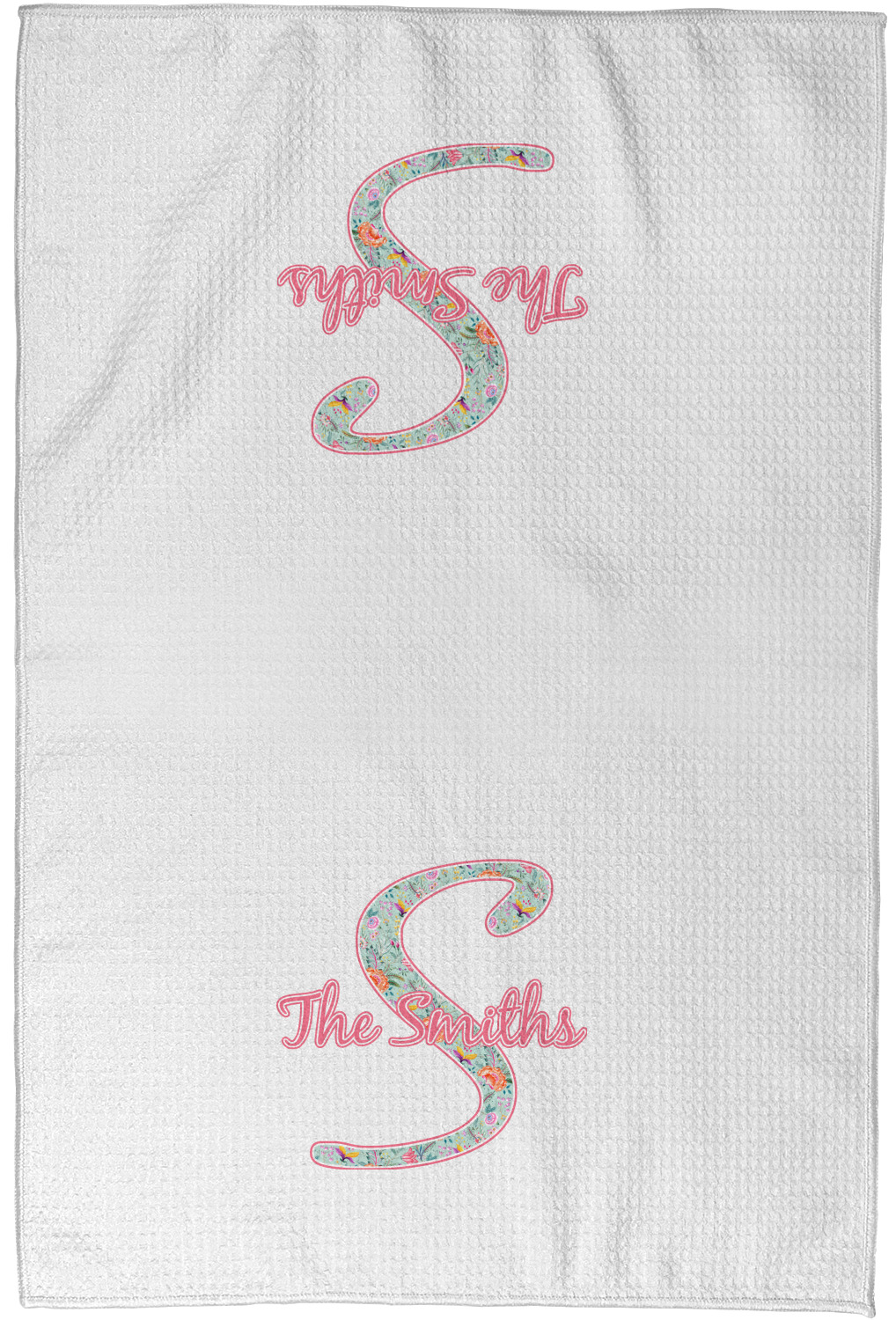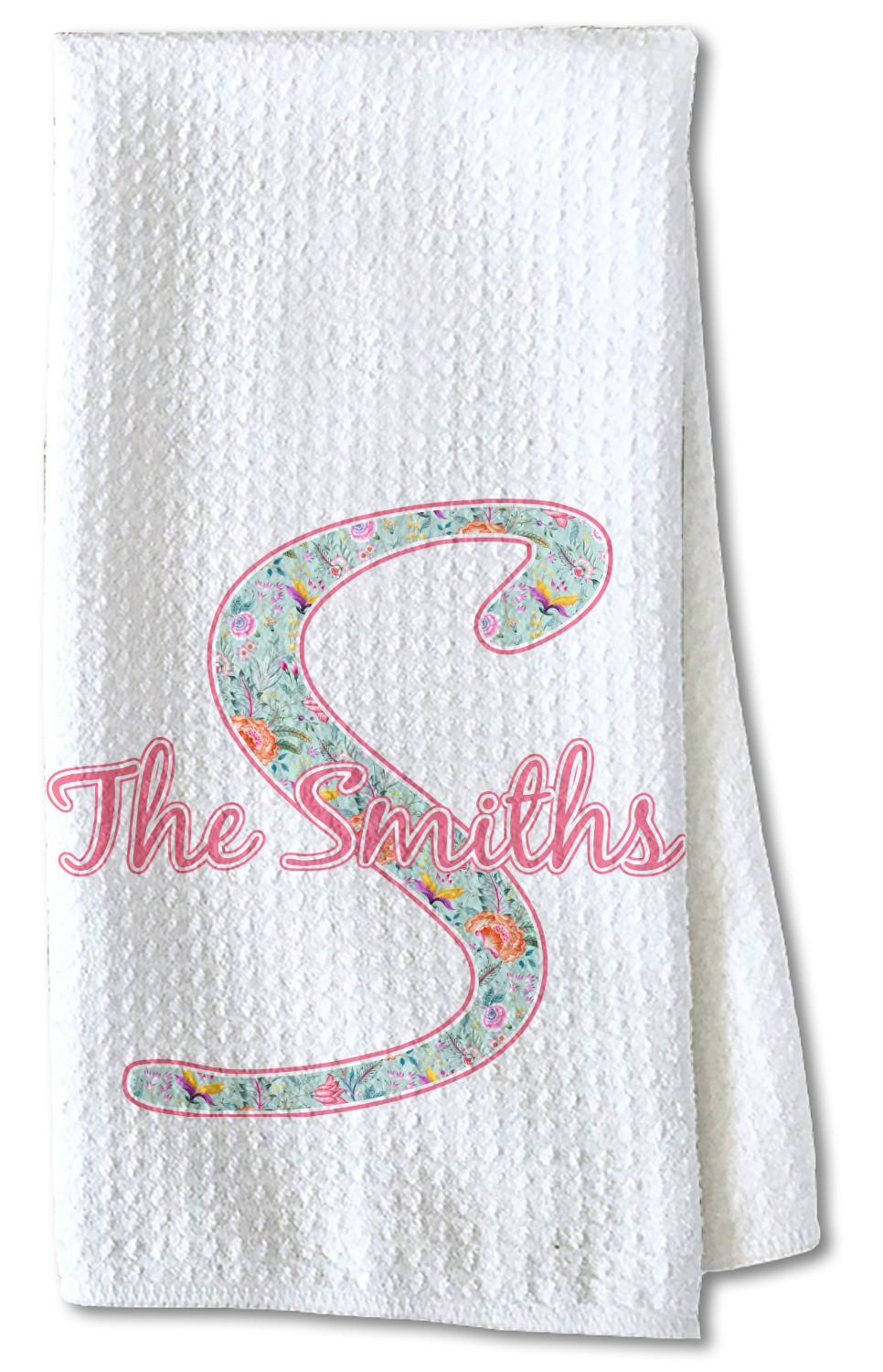 Each waffle weave kitchen towel is approximately 16 x 24 inches with your design printed on one side and the back is white.