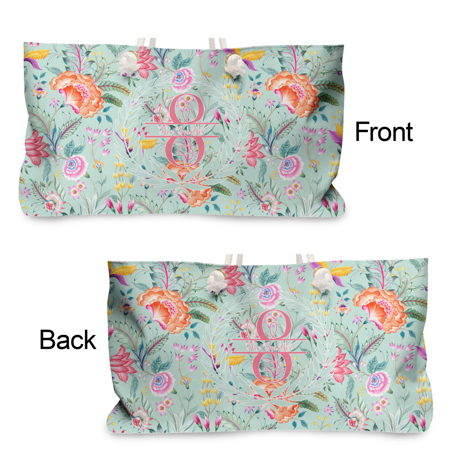 These weekender totes can be customized front and back. The totes are full all over print - so the choice of how background are endless - from beautiful floral or leaf patterns to geometrics or some classic Van Gogh artwork - the possibilities are endless. The totes can also be decorated with photos and logos.