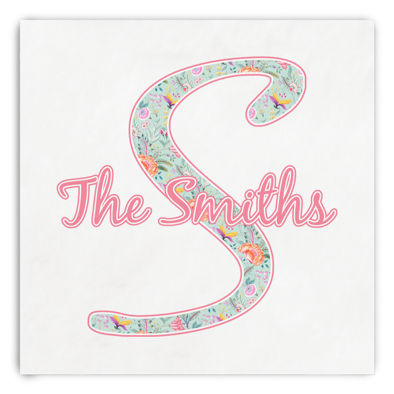 It features beautiful flowers and has a recolor-able background. We chose a light teal blue background to create a really soft & pretty design. We have featured a name & initial personalization in a leaf frame for the main design template.
