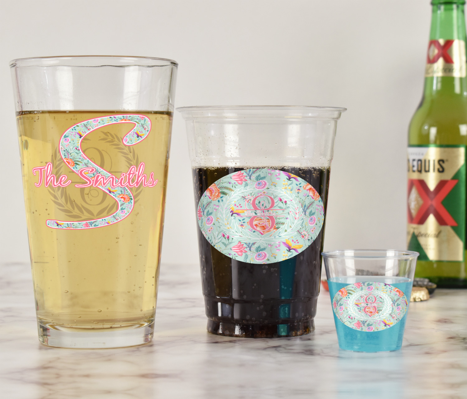 With these glasses you will get your choice of 2 content items on them. Perfect for company promotion or if you own a small restaurant or bar order these to perfectly match your business. Once designed we will print your design directly onto the glass and then a clear coat applied over it to ensure the print lasts for years to come.