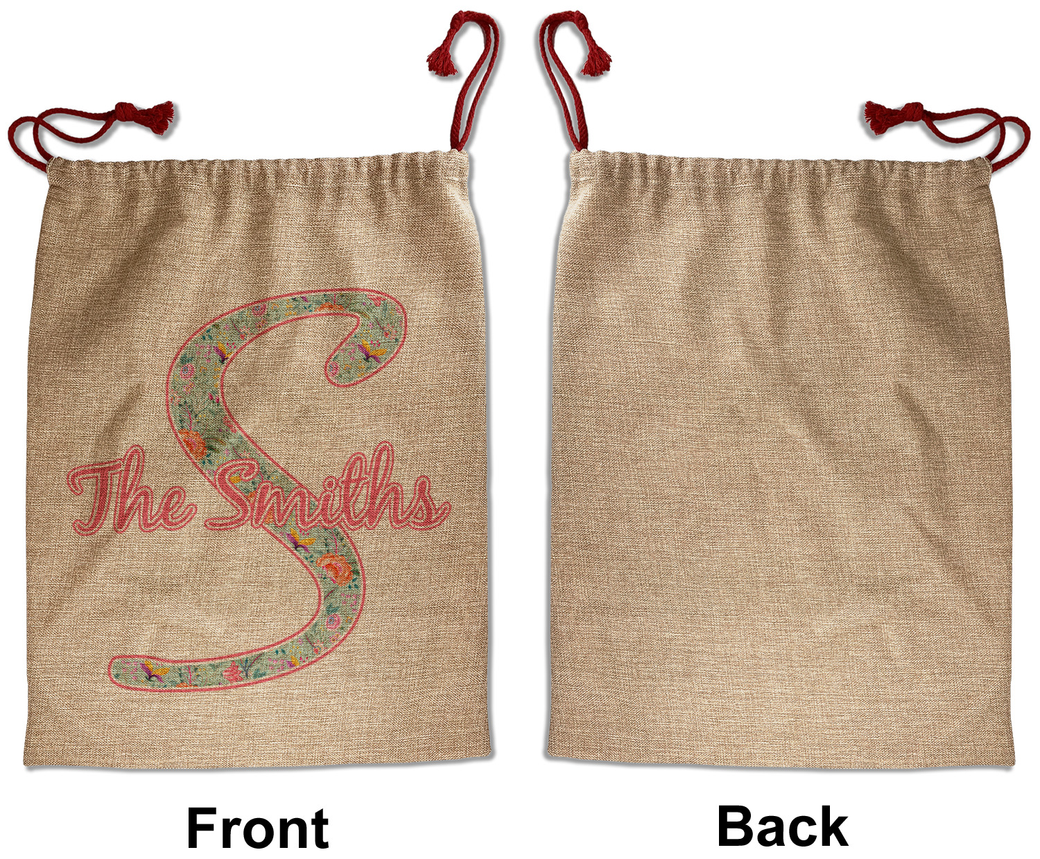 Our Santa sacks print your design on the burlap material giving it a nice rustic, natural design! The burlap material is also machine washable and wrinkle-free, so feel free to fold and store out Santa bags until the next time you need it! Secure your gifts with our red accent drawstring ties at the top of the sack so the mystery of your gift stays a surprise until Christmas day. We offer two types of printing- one side partial print or double-sided partial printing. Design and personalize your own Santa sack in time for the holidays!