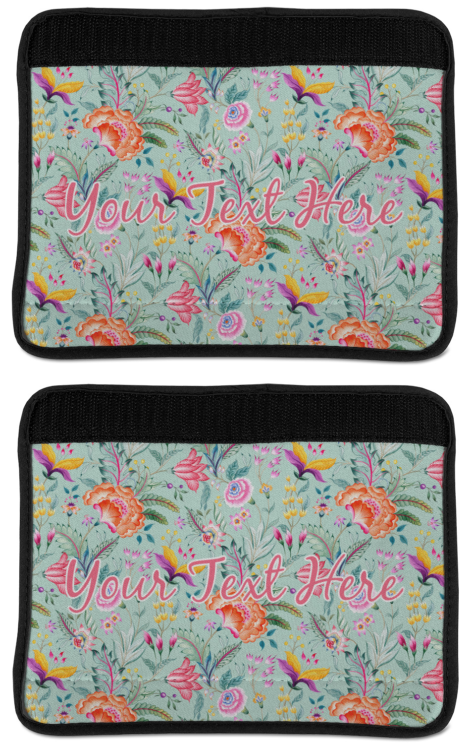 Made from neoprene, our seat belt strap covers wrap around the belt itself and have a Velcro tab for easy attachment and closure. The belt's edges are trimmed with a black polyester for a secure finish. Each cover is 9.5 by 7 inches when open and 9.5 by 2.5 inches when closed. We print your personalized design on the face of the seat belt pad.