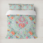 It features beautiful flowers and has a recolor-able background. We chose a light teal blue background to create a really soft & pretty design. We have featured a name & initial personalization in a leaf frame for the main design template.