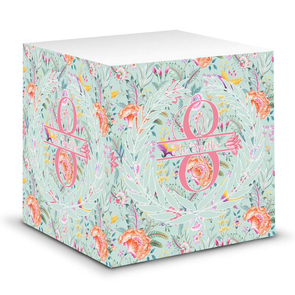 This note cube features 700 sheets of matte, white paper. Each sheet measures at 3.5 by 3.5 inches and has an adhesive strip at its top. Your personalized design is displayed on all four edges of the sticky pad.