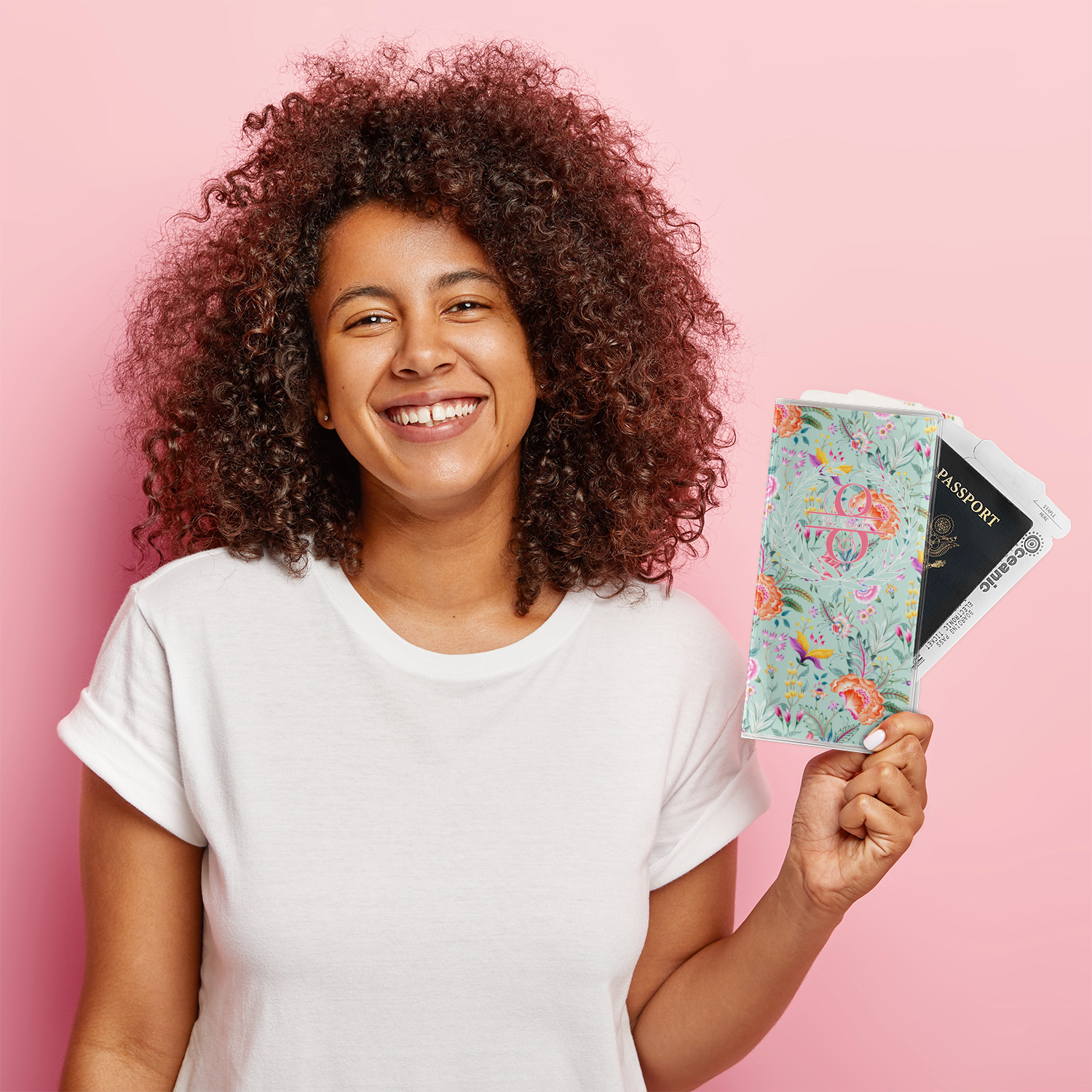 This document holder is really sturdy and has your personalized design inserted right behind all of your nifty pockets, so you can see it on the front and back covers. There are two large pockets and two shorter pockets inside. The larger pockets are tall enough to keep your boarding pass nice and straight. The smaller pockets (on top of the large pockets) are large enough to fit your passport, credit card, or ID.