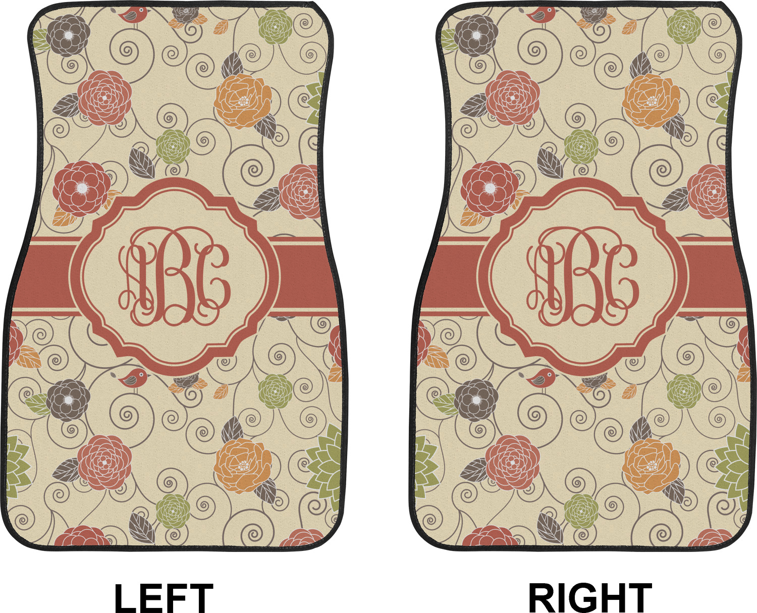 We craft our auto floor mats mats from polyester, apply a black finish to the edges, and lined at the bottom to prevent slippage. These mats protect your floors from grass, mud, and any accidental spills. We display your personalized design on the front face of each mat. The sizes of these car floor liners are standardized to provide a versatile fit for all vehicles. The front rows car mats measure at 17 by 26.5 inches, while the back rows measure at 17 by 13 inches. We sell three packages of car floor mats. You can purchase a pair of front row car mats, a pair of back row car mats, or a set of front row and back row car mats. To make an informed purchase, we recommend measuring the surface area of your car floors.